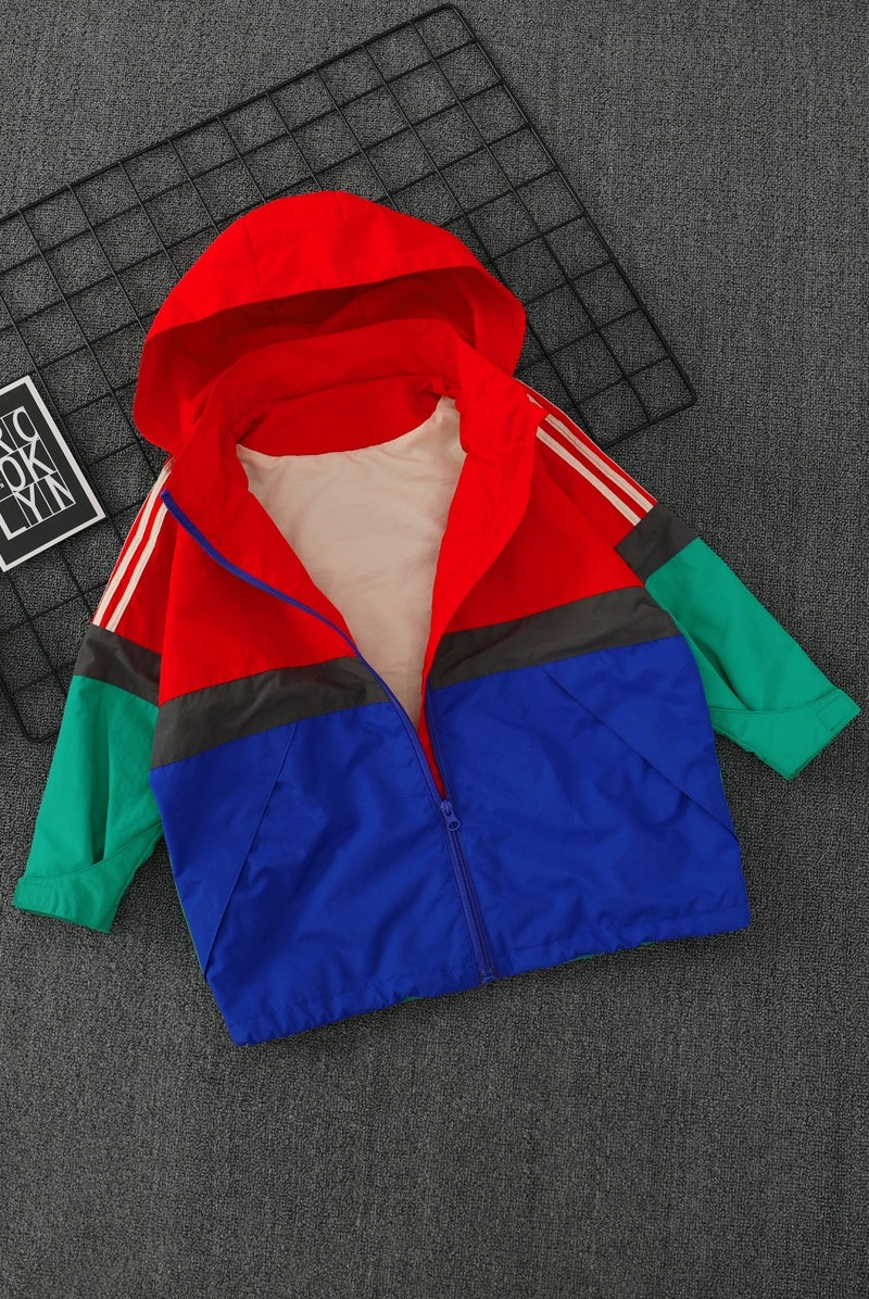 Description: Global Breeze: Spring Stormsuit Coat is a versatile and stylish jacket designed for the spring and autumn seasons. Crafted with 100% polyester fiber, it offers durability, comfort, and excellent weather protection. Featuring a high collar and removable hood, this coat provides both warmth and functionality, making it ideal for active days outdoors. The four-color color matching adds a modern touch, while the zippered closure ensures a secure fit. This coat is perfect for children who love to stay active while staying stylish.