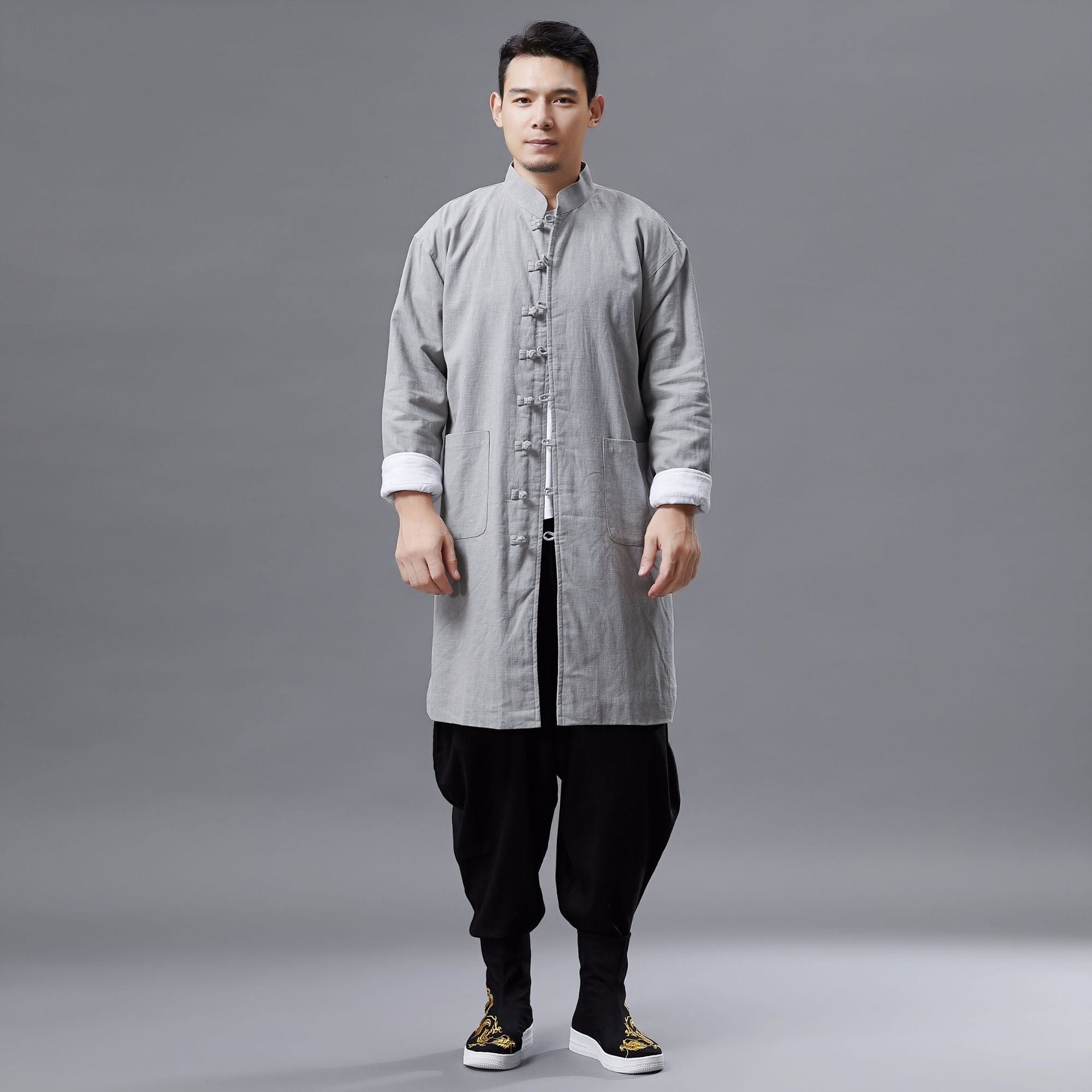Cotton and Linen Windbreaker Mid-length Stand-Collar Men's Windbreaker