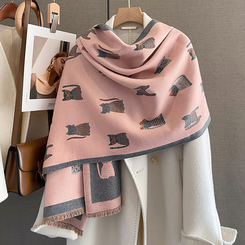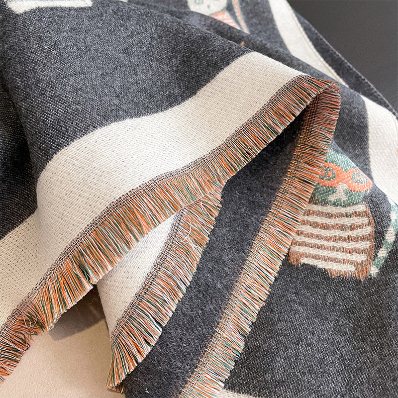 Fashion Artificial Cashmere Scarf Female Winter Korean Style Versatile Student Thickened Scarf Dual-purpose Shawl Outer Match