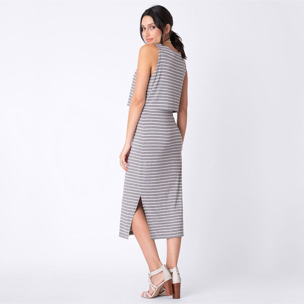 The MamaEase Layered Feeding Dress is a versatile, sleeveless maternity dress designed to make breastfeeding simple and stress-free. Crafted from soft and breathable cotton, it offers exceptional comfort throughout the day. This long, one-piece dress features a casual striped pattern and a cleverly concealed nursing access layer, making it ideal for new moms who want both function and fashion. Whether you’re lounging at home or stepping out, this dress is perfect for stylish mothers who value ease and elegance in their maternity wear.