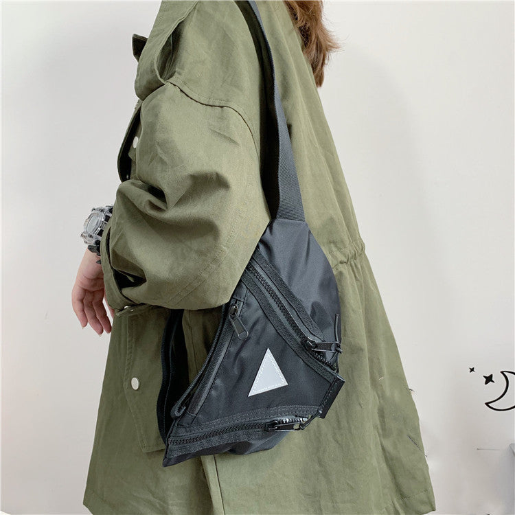 The Luma Cross Reflective Bag is a trendy and practical crossbody messenger bag designed for casual wear. Crafted from durable Oxford spinning fabric, it features a unique triangle pattern and a reflective strip for added safety and style in low-light settings. With a small and soft structure, this bag is perfect for juniors or anyone looking for a functional and fashionable accessory. Its foldable design and single shoulder strap make it an ideal companion for daily activities, offering comfort and easy portability.