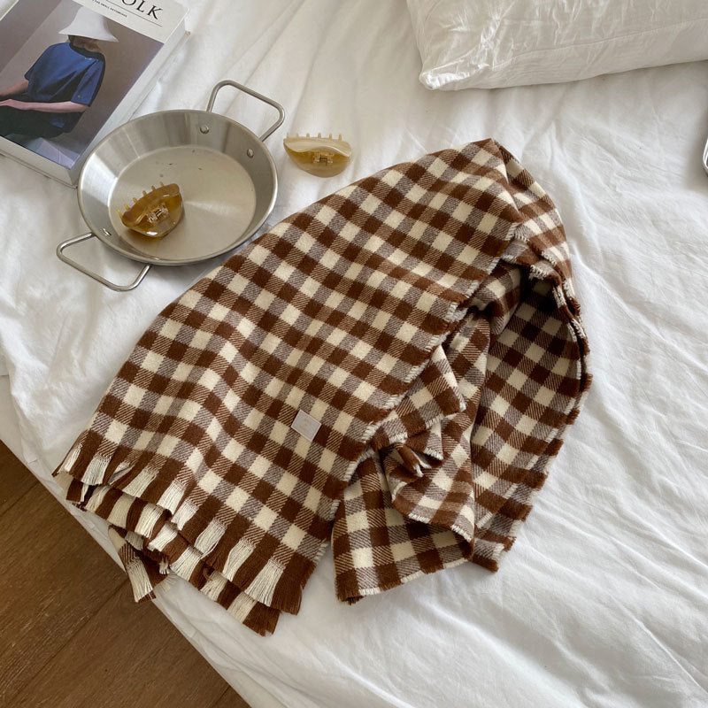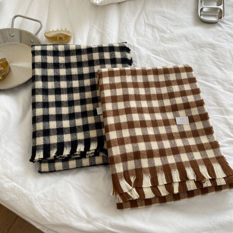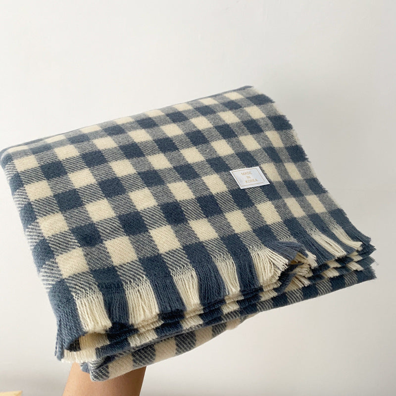 The Timeless Threads Shawl is a beautifully crafted woven scarf designed for stylish warmth and winter fashion. Made from premium imitation cashmere, it combines softness and durability, ensuring all-day comfort. The classic plaid pattern in black, brown, or sky blue adds a sophisticated touch to any ensemble, while its versatile size allows for creative draping and layering. Ideal for women who embrace natural, Japanese, and Korean fashion styles, this shawl is perfect for keeping warm during chilly days.